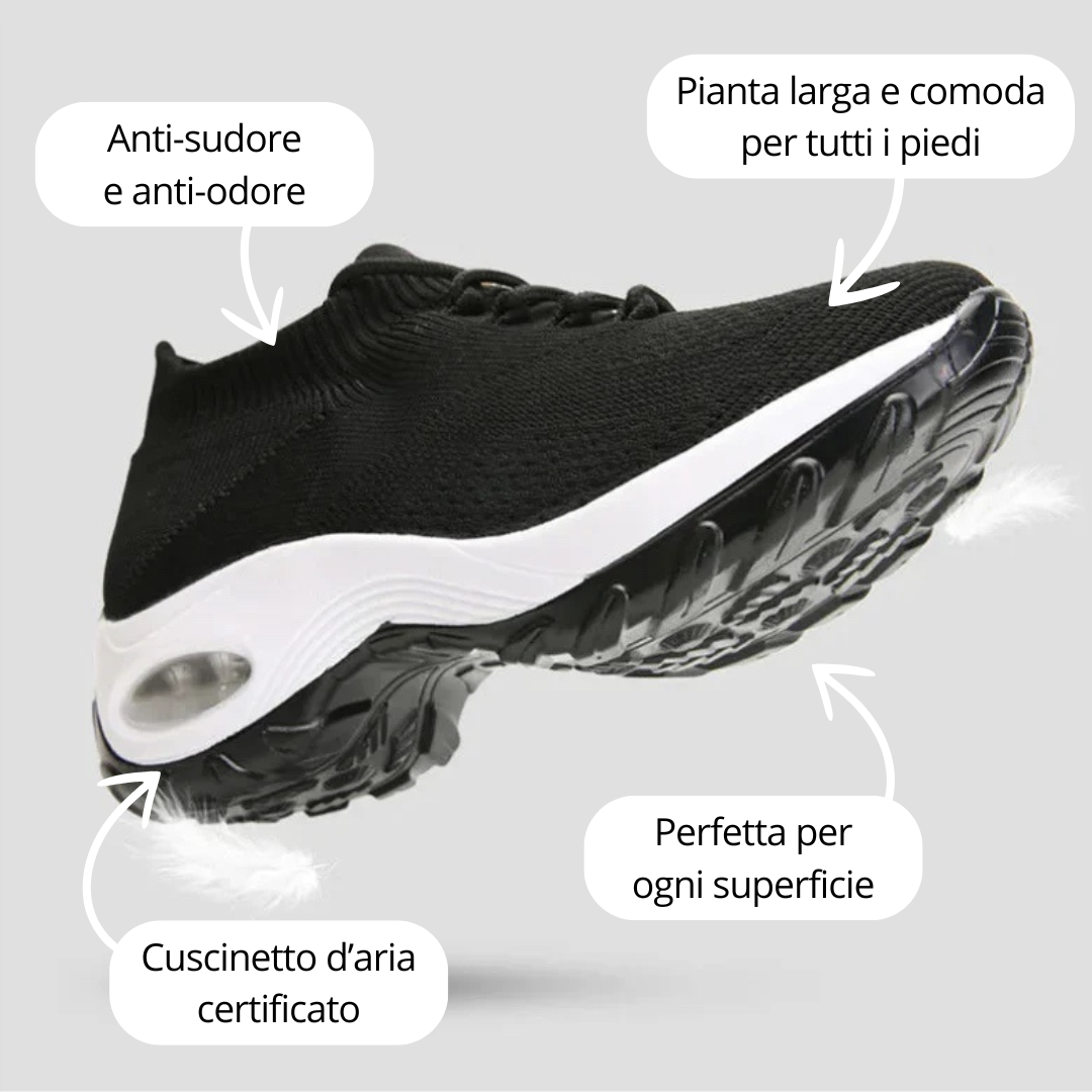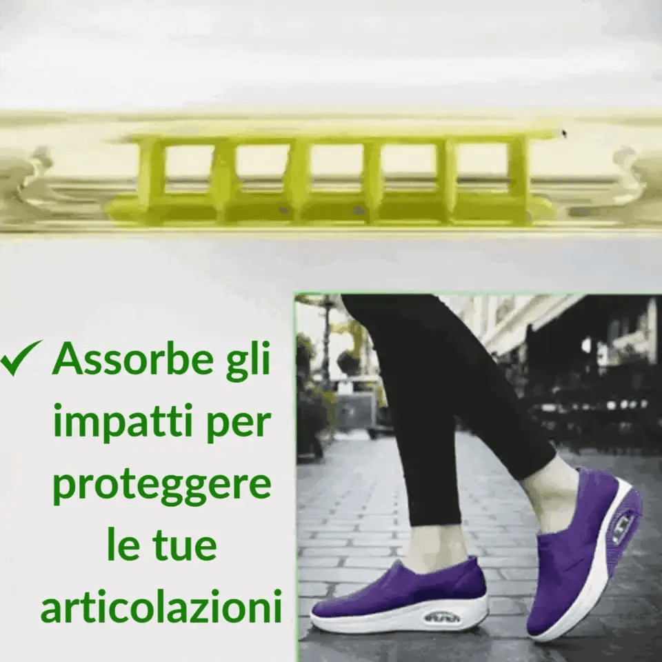 La nostra Scarpa Antidolore con Cuscino d’Aria utilizza la tecnologia SoftGel™ che combinata con il cuscinetto d’aria integrato, garantisce un comfort straordinario, migliorando la circolazione e riducendo gonfiore e stanchezza.